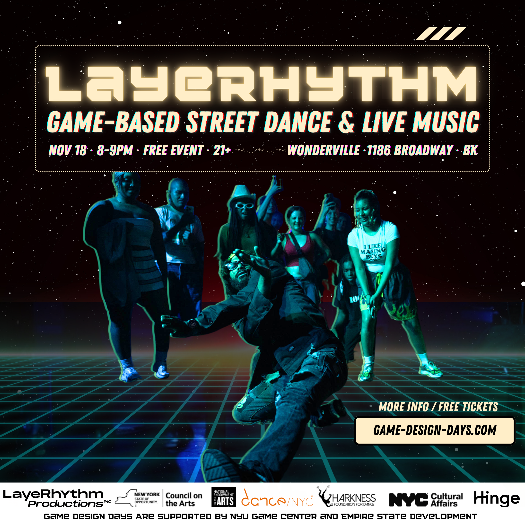 LayeRhythm (LR) highlights freestyle dance and music voices under-recognized in the traditional performing arts landscape while providing entertainment, building community through play, educating audiences in cultural history, preserving the legacy of street & club dance forms, transforming individuals’ relationship to music & dance and supporting emotional & social well-being. LR is dedicated to risk-taking improvisation and interactive audience engagement through performances and educational events.