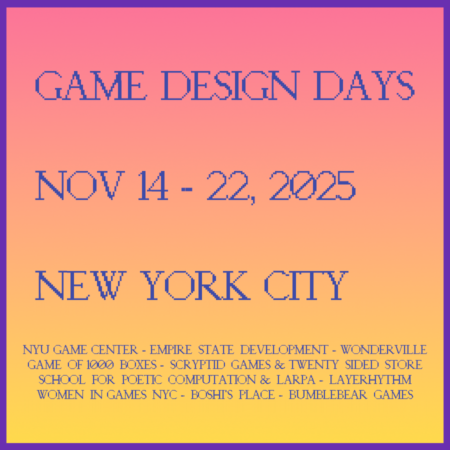 Join the School for Poetic Computation at our arcade showcase! Play games that are fun, weird, personal, or pure shitpost — games that challenge and explore genre tropes, platform histories, and the ethics of game design. Our arcade features games made by students of 100 Games Later: Athletic Aesthetics & Shitpost Mechanics. No materials or experience required. Come and play!